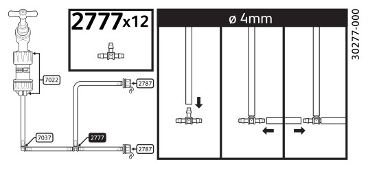 4mm T-fitting – Use to distribute the irrigation system around your garden